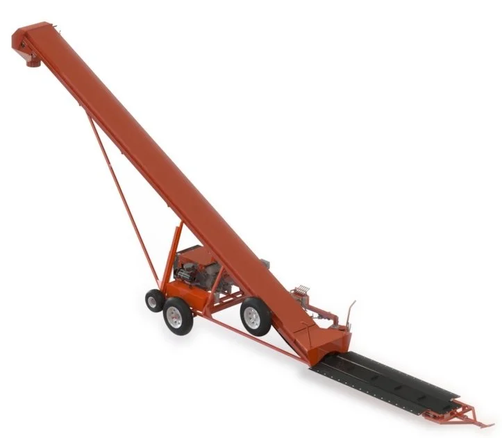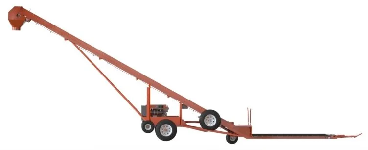 Capacity: 4 Tons per min Width @ Tires: 8ft Belt Width: 24in Dump Height: 14ft-6in Height (transport): 13ft Bottom Pan Height 6in Engine: 55 hp Diesel Tier 4 Final Steering: Ground drive w/ rear lift Tires: 225-90R16